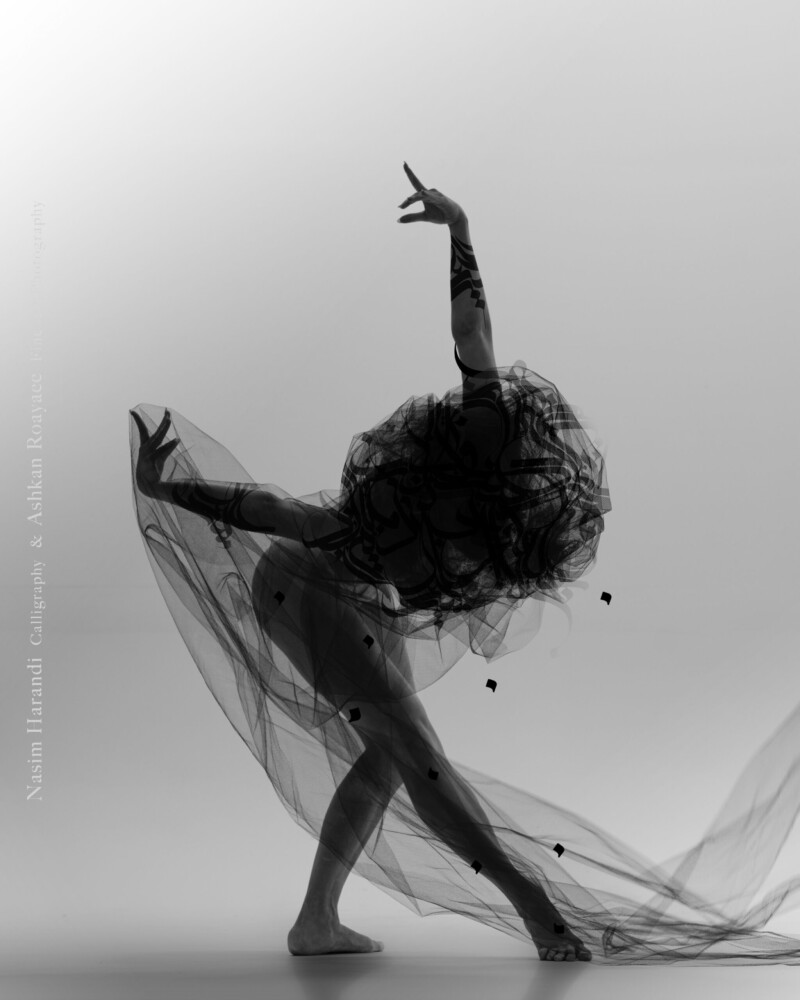 Introducing a collaboration between Houston-based fine art photographer, Ashkan Roayaee, and Australia-based artist Nasim Harandi. Together, they are digging deep into their cultures and combining the art of calligraphy with Fine Art photography. The calligraphy in this series is in Farsi and is drawn from both contemporary Farsi and historic Persian poems. This project is very near to my heart since I’m no longer living in my home country of Iran. The series allows me to combine my cultural roots with photography, dance, and the immaculate work of Nasim. The ability of art to transcend boundaries of culture and language is further exemplified in this project by using dancers from backgrounds similar to Ashkan’s own with cultural and religious taboos related to dance and the female form. Creating and collaborating together to celebrate our similarities as well as our differences is foundational to Ashkan’s art and his message that we are one.
